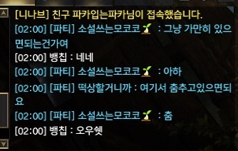 이건 진짜 모카인 최대치... ㅋㅋㅋㅋ 모코코 오레하 무료 경미참버스 태워주는데 자꾸 따라오길래 파티원 중 한명이랑 모코코랑 대화 한 내용이다.